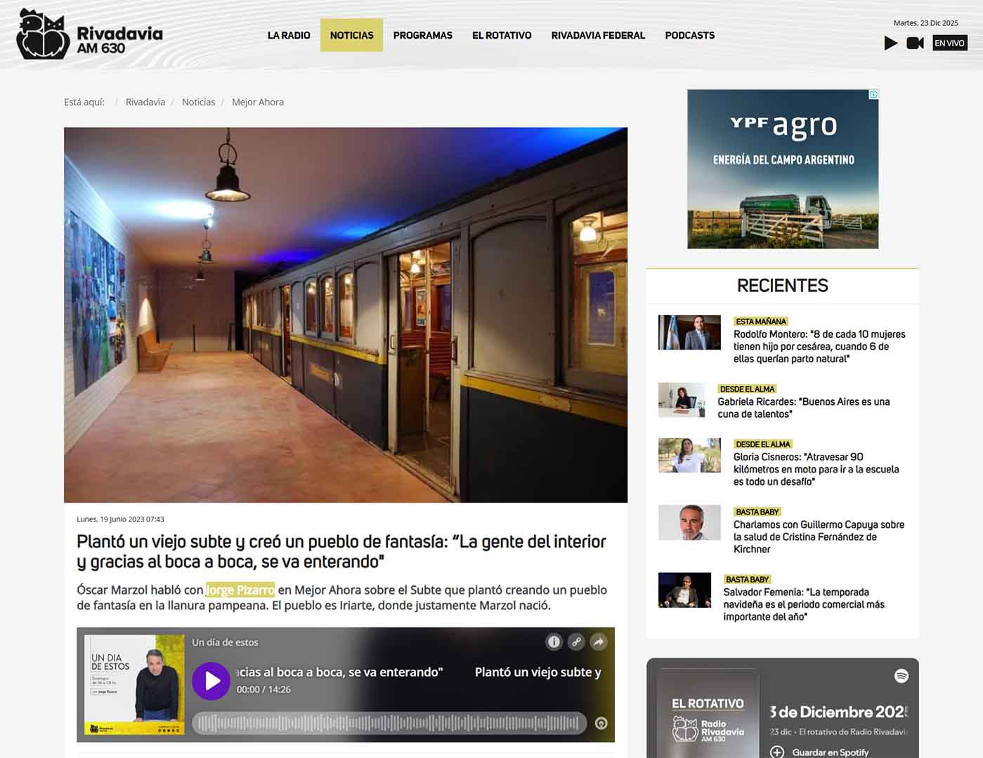 Radio Rivadavia – Programa Mejor Ahora con Jorge Pizarro en el Museo Iriarte